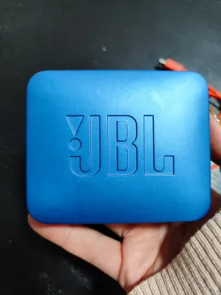Altavoz portátil JBL en color azul. Incluye cable de carga. - Diseño compacto y ligero. - Conexión inalámbrica Bluetooth.