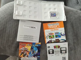 Videojuego Pokémon Luna para Nintendo 3DS. Incluye manuales y folletos. - Cartucho de juego Pokémon Luna. - Manual de instrucciones. - Folleto de información importante. - Folleto de Nintendo eShop con demos gratuitas. - Folleto de modelos de Nintendo 3DS.
