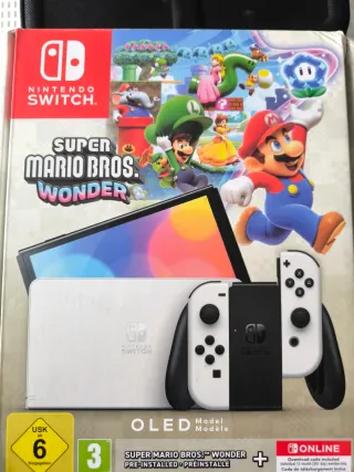 Consola Nintendo Switch versión OLED en color blanco. Incluye todos sus accesorios originales. - Base de carga. - Joy-Con (L) y (R). - Agarre para Joy-Con. - Cables. - Funda de transporte.