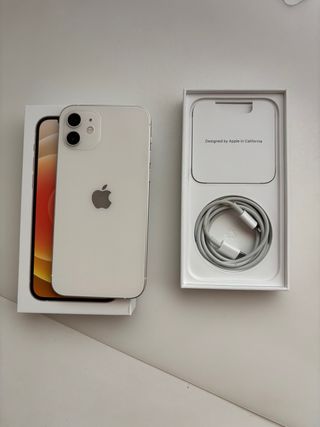Teléfono móvil iPhone 12 en color blanco. - Incluye cable de carga USB-C a Lightning. - Documentación de Apple.