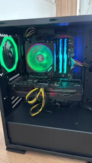 PC Gaming Sobremesa RGB Placa Base: MSI X470 Gaming Pro CPU: AMD Ryzen 7 2700X RAM: DDR4 3200 16G (8+8) GPU: Radeon RX VEGA 56 8G Memoria: 1 Disco M2 500G 1 HDD 1000G Fuente Alimentacion: 750W Bronze Tiene unos años pero sigue rindiendo bien en la mayoria de juegos actuales a mas 60FPS a 1920x1080