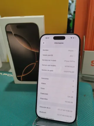 Este iPhone 16 Pro en color dorado tiene una capacidad de almacenamiento de 128GB. ✅ 95% - Diseño elegante y moderno. - Acabado metálico premium.