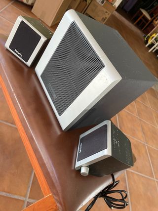 Sistema de altavoces 2.1 de Philips. - Modelo MMS 231/00. - Diseño en color negro y plateado.