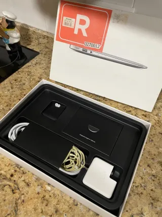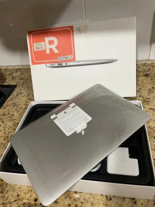 Portátil MacBook Air de 11 pulgadas, modelo de 2015. - Diseño delgado y ligero. - Acabado en color plata. 128gb memoria fhash i5 de doble núcleo a 1,6ghz 4gb de memoria integrada En un perfecto estado estético y de uso mínimas marcas apreciables, nunca desmontado Batería "normal," 750 cargas El cargador está un poco tocado tienes que buscar la piscina de carga hasta que el puntito de color aparezca y listo para cargar y funcionar al 100x100 de ahí el precio