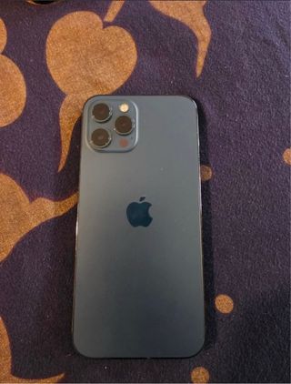 Teléfono móvil iPhone 12 Pro Max en color azul. - Diseño elegante y moderno. - Sistema de triple cámara avanzado. - Pantalla nítida y vibrante. - Muy nuevo