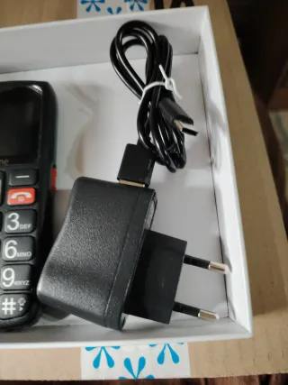 Teléfono móvil Artfone con un diseño clásico y teclas grandes. Funciona perfectamente ,con emergencias - Pantalla clara. - Teclado numérico. - Botones de llamada y finalización de llamada. Conserva protector pantalla como se puede ver en la foto con su cargador