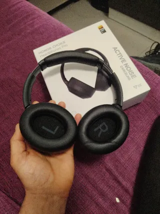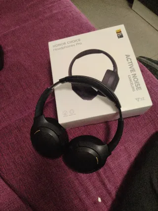 Auriculares Honor Choice Headphones Pro en color negro. - Cancelación activa de ruido (ANC). - Audio de alta resolución (Hi-Res Audio). - Incluye cable y bolsa para auriculares.