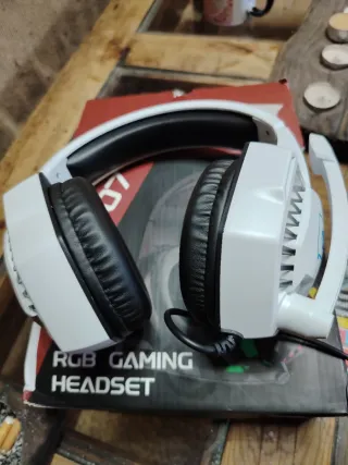 Auriculares gaming con iluminación RGB en color blanco. - Diseño moderno y llamativo. - Almohadillas cómodas para largas sesiones. - Micrófono integrado.