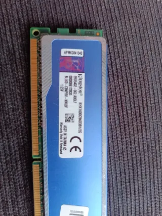 Dos módulos de memoria RAM DDR3 Kingston HyperX Blu. - Capacidad: 2GB cada uno (total 4GB). - Modelo: KHX1600C9AD3B1/2G. - Voltaje: 1.55V. - Color azul.