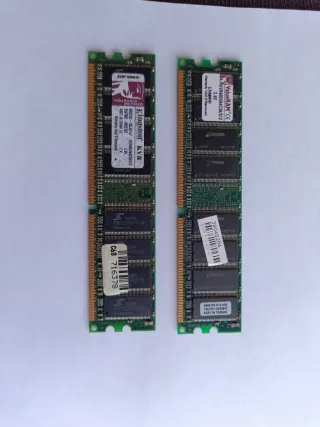 Se venden dos módulos de memoria RAM Kingston DDR3 de 512MB cada uno. - Capacidad total: 1GB (2x512MB). - Tipo de memoria: DDR3. - Modelo: KVR400X64C3A/512. - Voltaje: 2.6V.