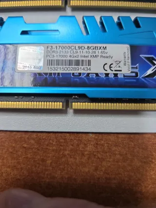 Pack de dos módulos de memoria RAM G.Skill Ripjaws X. - Capacidad total de 8GB (2x4GB). - Velocidad de 2133MHz. CL9 - Tipo DDR3.