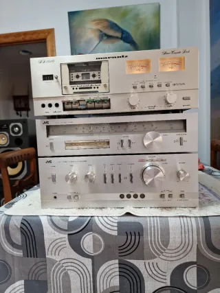 Equipo de sonido JVC modelo A S 7, compuesto por amplificador, sintonizador y reproductor de casetes. De alta gama se vende equipo o por separado. - Amplificador integrado. As 7 - Sintonizador estéreo.T- V 5 - Reproductor de casetes estéreo.KD A 2