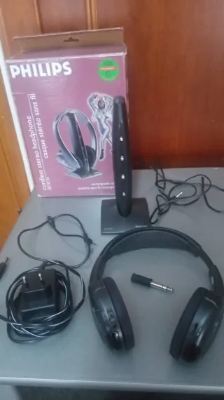 Cascos inalámbricos de la marca Philips. - Diseño ergonómico para mayor comodidad. - Transmisión de audio clara y nítida. - Base de carga incluida. - No sirven para ir por la calle