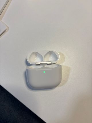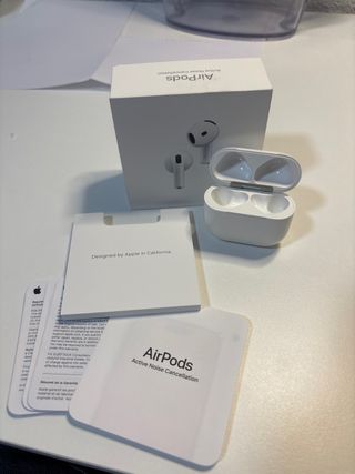 Estuche original para AirPods de 4ª generación. Está en muy buen estado, ya que siempre lo he llevado con carcasa protectora, por lo que no tiene golpes ni marcas. Funciona perfectamente y carga sin ningún problema. Lo vendo únicamente porque me dejé los auriculares en el autobús y me quedé sin ellos. Incluyo también la caja original. Ideal si has perdido tu estuche o necesitas uno de repuesto. Cualquier duda, escríbeme 😊