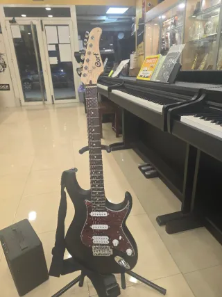 Guitarra eléctrica Cort color negro, amplificador