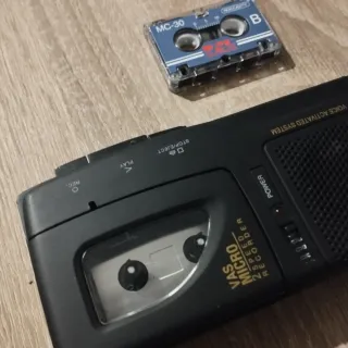 Grabadora de sonido analógica compacta. - Diseño en color negro. - Sistema de activación por voz. Incluye cinta micro cassette. Ideal para amantes de lo vintage. Está totalmente nueva, sin usar.