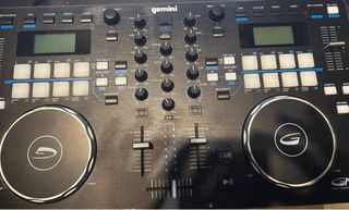 Controlador de medios profesional Gemini GMX de 2 canales. Diseñado para DJs. - Diseño elegante en negro y multicolor. - Interfaz intuitiva con pads y jog wheels. - Pantalla digital para información de pistas.