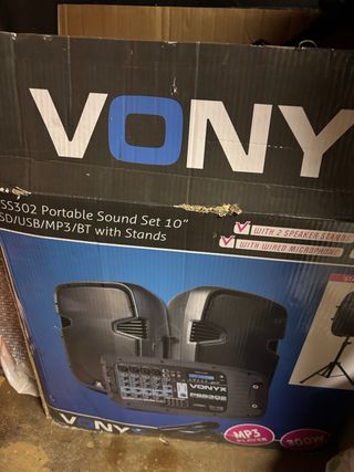 Set de sonido portátil Vonyx PSS302 con altavoces de 10 pulgadas. - Incluye altavoces y mesa de mezclas. - Reproducción SD/USB/MP3/BT. - Incluye soportes para altavoces.