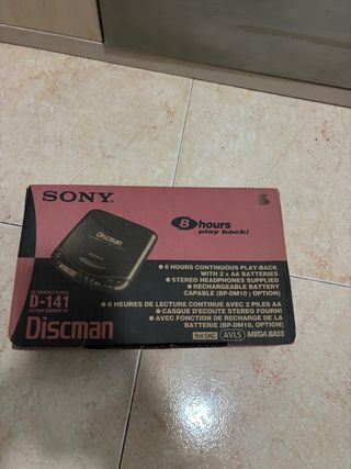 Reproductor de CD portátil Sony Discman D-141. - 8 horas de reproducción continua con 2 pilas AA. - Incluye auriculares estéreo. - Compatible con batería recargable (BP-DM10, opcional). - DAC de 1 bit. - AVLS (Control de Nivel de Volumen Automático). - Mega Bass.