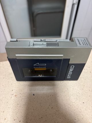 Reproductor de casetes portátil. - Diseño compacto y ligero. - Incluye funda protectora negra. - Correa de transporte.
