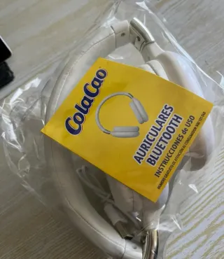 Auriculares Bluetooth de la marca Cola Cao, precintados y sin abrir. - Color blanco. - Instrucciones de uso incluidas.