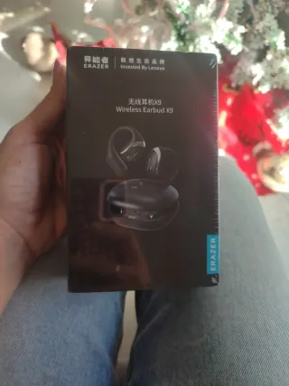 Auriculares inalámbricos ERAZER X9, una marca asociada a Lenovo. - Diseño ergonómico. - Estuche de carga incluido.