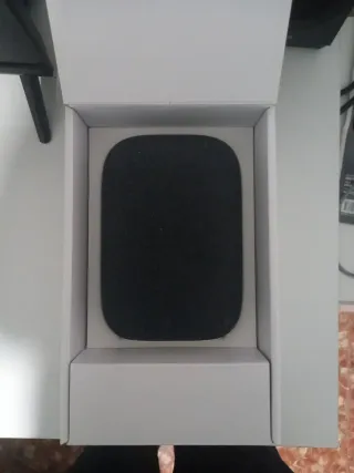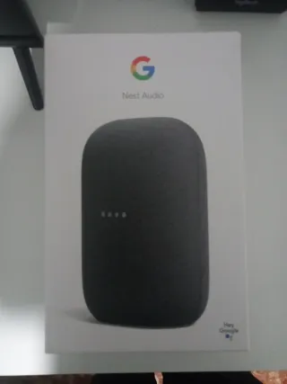 Altavoz inteligente Google Nest Audio en color gris. Diseñado para ofrecer un sonido de alta calidad y facilitar el control de tu hogar. - Diseño moderno y compacto. - Integración con el ecosistema Google. Cargador Caja e instrucciones originales