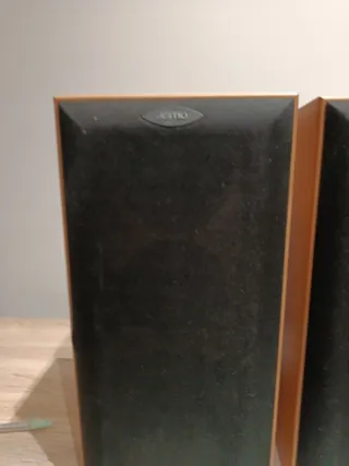 Par de altavoces Jamo en color negro. SE VENDEN COMO ROTOS POR SU ESTADO - Diseño elegante. - Acabado en madera clara.