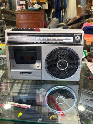 Radio cassette Sanyo M2402-4F en color plata. Un clásico para disfrutar de la música. - Sintonizador de radio FM/AM. - Reproductor de cintas de casete. - Entrada para micrófono. Funciona perfectamente tanto radio como casette