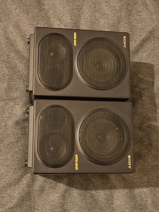 Par de altavoces Sony Megabass en color negro. - Perfectos para un equipo de música antiguo o un ampli. - Conexión por cable