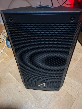 Altavoz de la marca Alto Professional. Diseño moderno y robusto. - Rejilla frontal protectora. - Asa superior para transporte. - Logo de la marca en la parte inferior frontal.