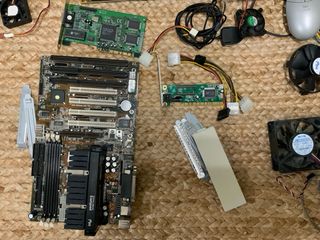 Lote de componentes de informática para PC que tengo desde hace tiempo en el trastero. Hay de todo, tarjetas gráficas antiguas y modernas, módems, placas base de Pentium, cables, tarjetas de sonido, tarjetas de red, etc. ISA, AGP, PCI y PCI Express. Soundblaster, NVIDIA, Intel. Todo funcionando cuando se guardó, pero obviamente me es imposible probarlo y se vende tal cual. Vendo todo el lote a coleccionista o para repuestos de retroinformática.