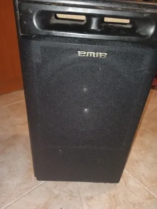 Altavoz de la marca Aiwa en color negro. - Conexión para cable de altavoz. - No tiene los cables. - Está como nuevo. - Poco uso por cambio de altavoz. - SOLO EN ARANJUEZ.