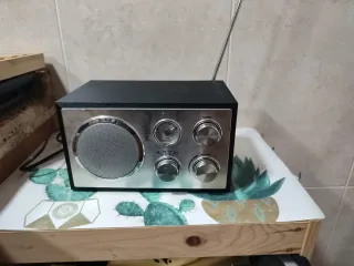 Radio con un diseño clásico y elegante, perfecta para cualquier espacio. - Acabado en color negro y plateado. - Estética retro.
