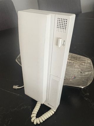 Telefonillo de superficie para portero automático. - Diseño moderno y compacto. - Acabado en color blanco. - Incluye cable en espiral.