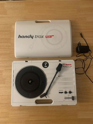 Tocadiscos portátil Vestax Handy Trax USB. Funciona perfectamente pero hay que sustituirle la aguja. - Diseño compacto y ligero. - Incluye adaptador de corriente.