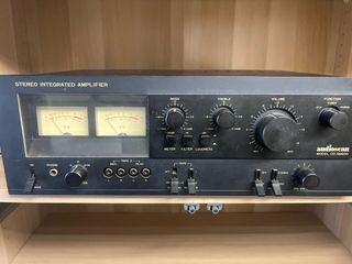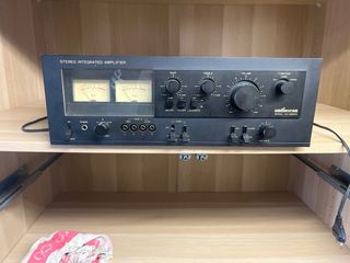 Amplificador integrado estéreo Audioscan CD-S6600, un clásico de los años 70. - Diseño frontal con VU metros. - Controles de Bass, Treble y Volume. - Conexiones para Phone, Tape 2 (Rec/Play), Aux, Tuner y Phono. - Selector de función y Loudness.