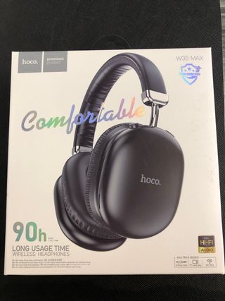 Auriculares inalámbricos hoco. W35 MAX con un diseño cómodo y elegante. - Modelo: W35 MAX - Color: Negro - Larga duración de uso: 90h (música/llamadas) - Múltiples modos: 3.5mm AUX, Tarjeta TF, Bluetooth V5.3 - Audio Hi-Fi