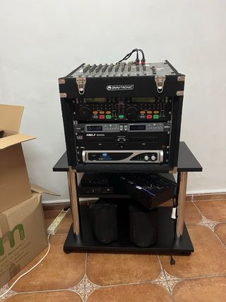 Se vende equipo de sonido profesional. Equipo de sonido profesional en rack Mesa de mezclas JBsystem Doble reproductor CD D.A.S. Reproductor digital USB y tarjetas SD Mark Amplificador AC Receptor de micrófonos inalámbricos y mesa independiente para micrófonos Altavoces AC