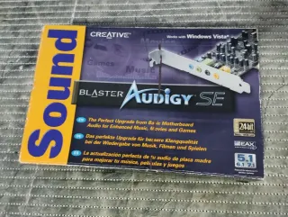 Tarjeta de sonido Creative con múltiples conexiones. - Conexiones de audio de diferentes colores (naranja, negro, verde, azul). - Soporte metálico para instalación en PC. SOUND BLASTER AUDIGY SE CREATIVE 5.1/6.1/7.1