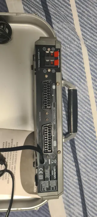 Amplificador de karaoke Lauson con un diseño elegante en tonos plata y oro. Ideal para tus sesiones de karaoke. Lo que se muestra en las fotos. HIFI - Controles de volumen y efectos digitales. - Entradas para dos micrófonos. - Maletín , CD e instrucciones.