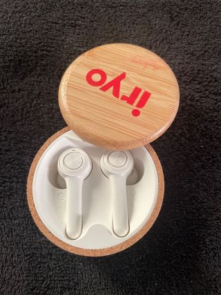 Auriculares inalámbricos de la marca Iryo. PRECIO NEGOCIABLE - Diseño moderno y elegante. - Incluye estuche de carga con tapa de bambú.