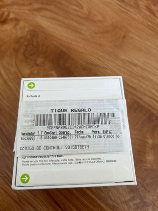 Auriculares inalámbricos Apple Airpods de 4ta generación (version estandar), completamente nuevos (con garantia) y sin abrir. Se incluye ticket de compra original (comprados en agosto de 2025). - Diseño elegante y ergonómico. - Sonido envolvente.