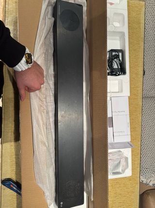 Barra de sonido elegante con un diseño moderno en su caja sin abrir. La foto principal es de internet, para mostrar cómo es , sin abrir la caja. - Acabado en color negro y plateado.