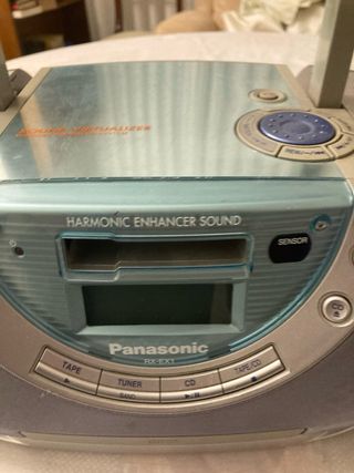 Radiocasete Panasonic con reproductor de CD y casete. - Diseño compacto y moderno. - Pantalla📟 digital. - 🔊 altavoces integrados. El casete no funciona,; se quedó una cinta dentro El CD y la 📻 radio funcionan bien