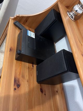Sistema de sonido envolvente 7.1. - Incluye 5 altavoces satélite. - Incluye 1 altavoz central. - Incluye 1 subwoofer. Es antiguo y potente.