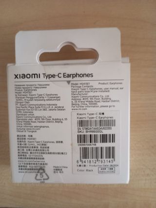Auriculares Xiaomi con conexión Tipo-C. - Diseño ergonómico para mayor comodidad. - Cable duradero y flexible.