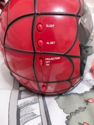 Radio despertador con diseño de Spiderman. - Diseño inspirado en el personaje de Spiderman. - Incluye sintonizador de radio AM/FM. - Botones de control de hora y alarma. - No funciona la rueda del volumen por lo que no se puede regular, pero si se escucha