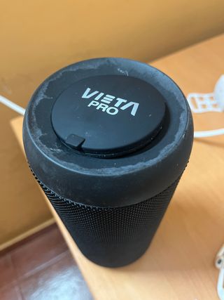 Altavoz portátil de la marca Vieta Pro. - Color negro. - Diseño cilíndrico con rejilla.