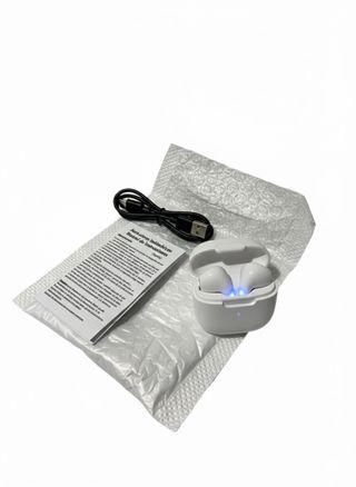 Auriculares inalámbricos TWS en color blanco. Incluyen su estuche de carga. - Estuche de carga compacto. - Cable de carga USB incluido. - Manual de instrucciones.